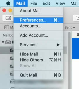 11. Ahora abrimos nuestra aplicación de Mail y en el menú superior seleccionamos Mail > Preferencias