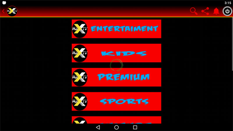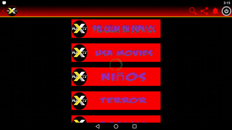Plix TV cuenta con las categorías de TV Latina, TV de USA, Películas, Conciertos, Radio, Canales 24/7 y Religión.